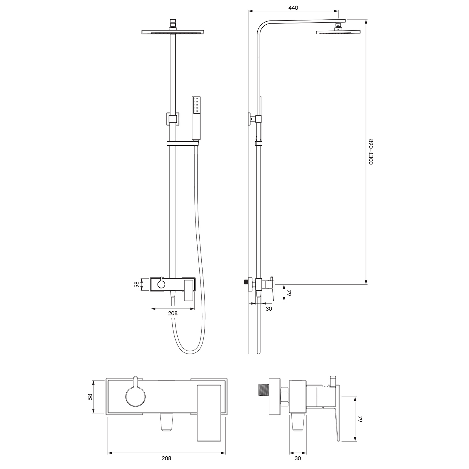 - Verstellbare Höhe, Mindest-/Maximal-Systemhöhe: 89 cm/130 cm
