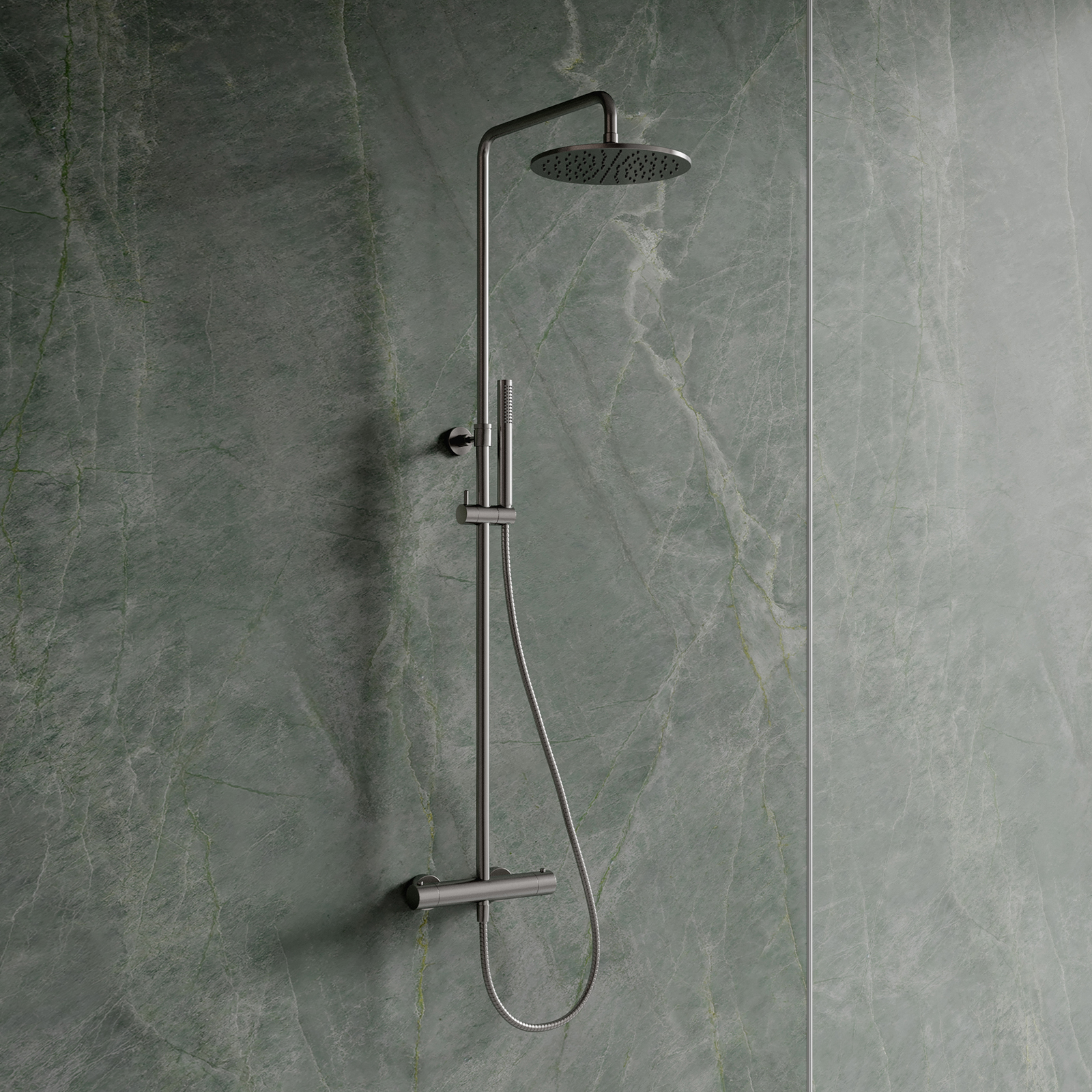 Thermostatisches Duschsystem Y oberflächenmontiertes gebürstetes Nickel.