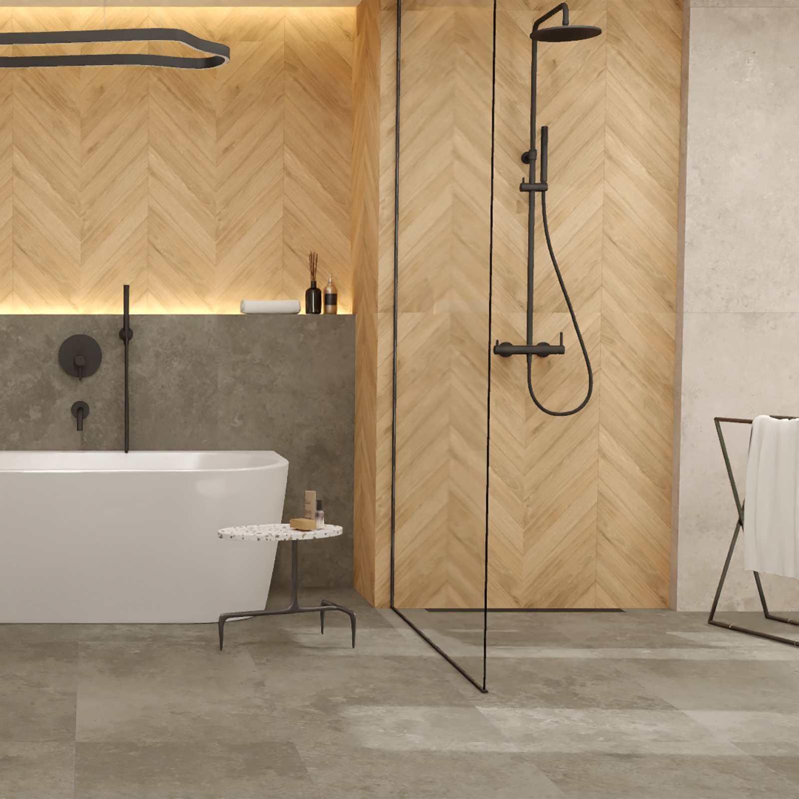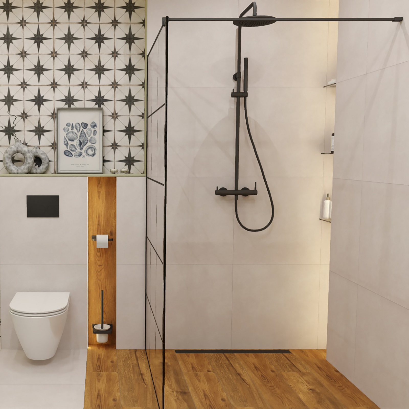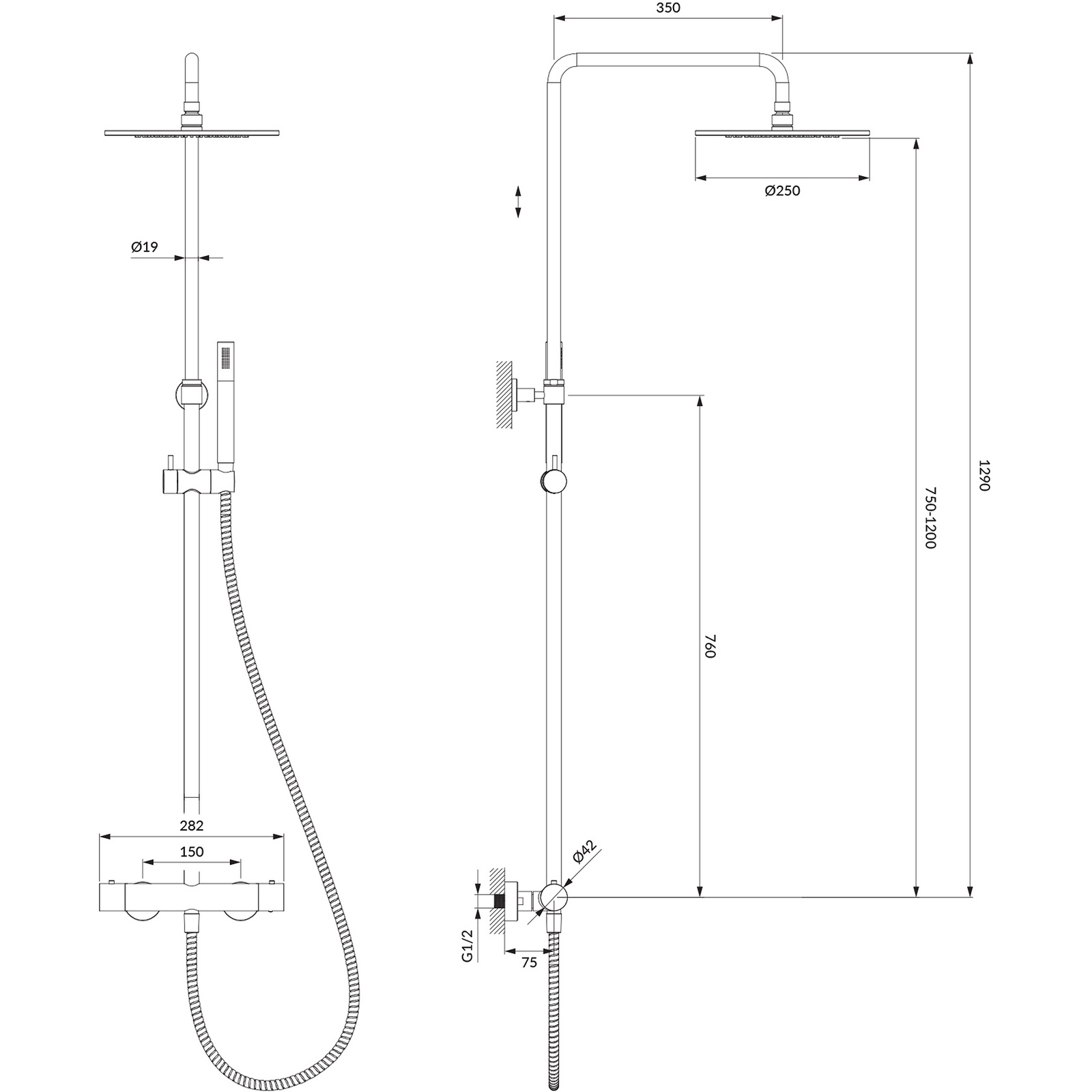 Thermostatisches Duschsystem Y oberflächenmontierte schwarze halbmatte.
