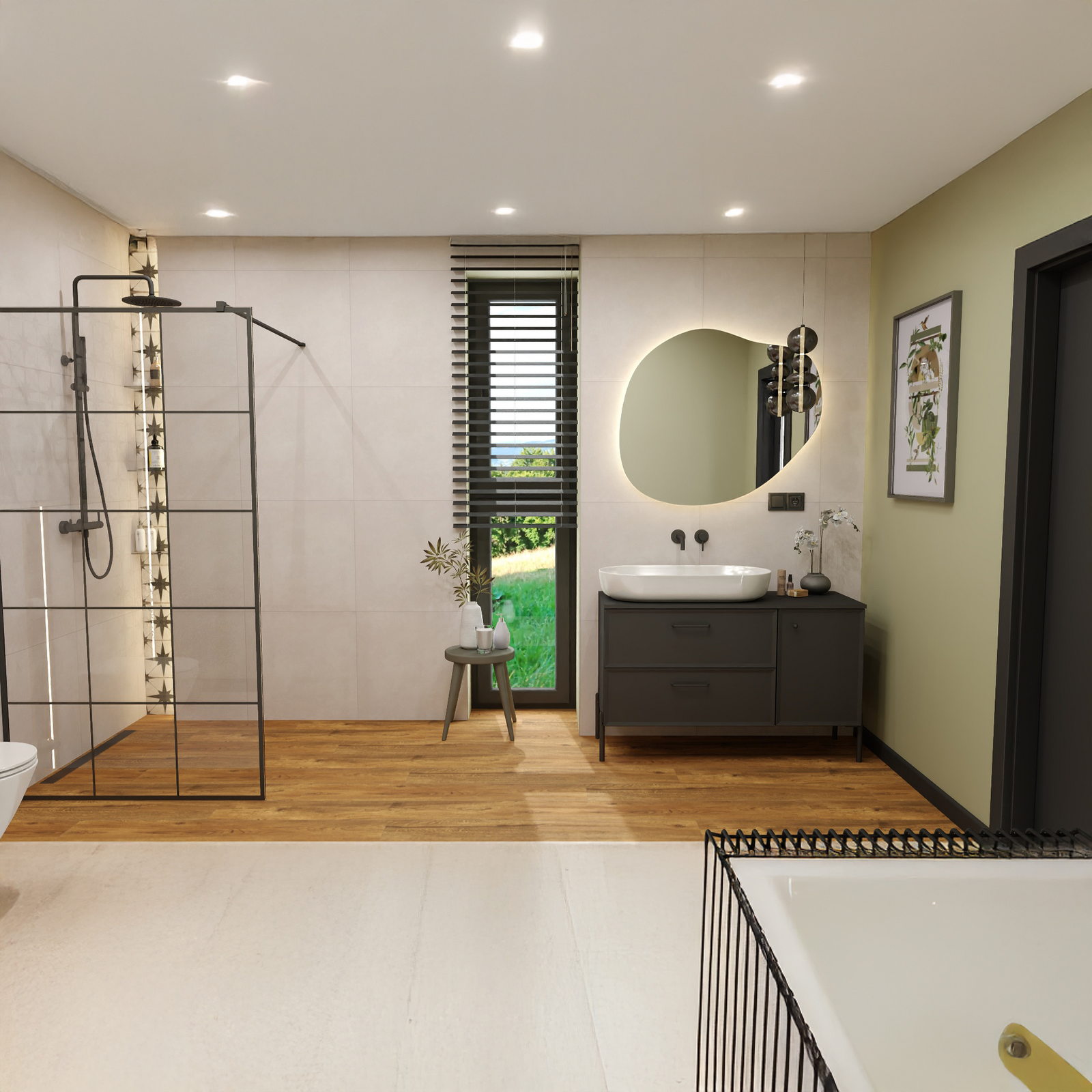 - Strahlschalter Regendusch/Griff integriert in den Wasserregler verstellbare
