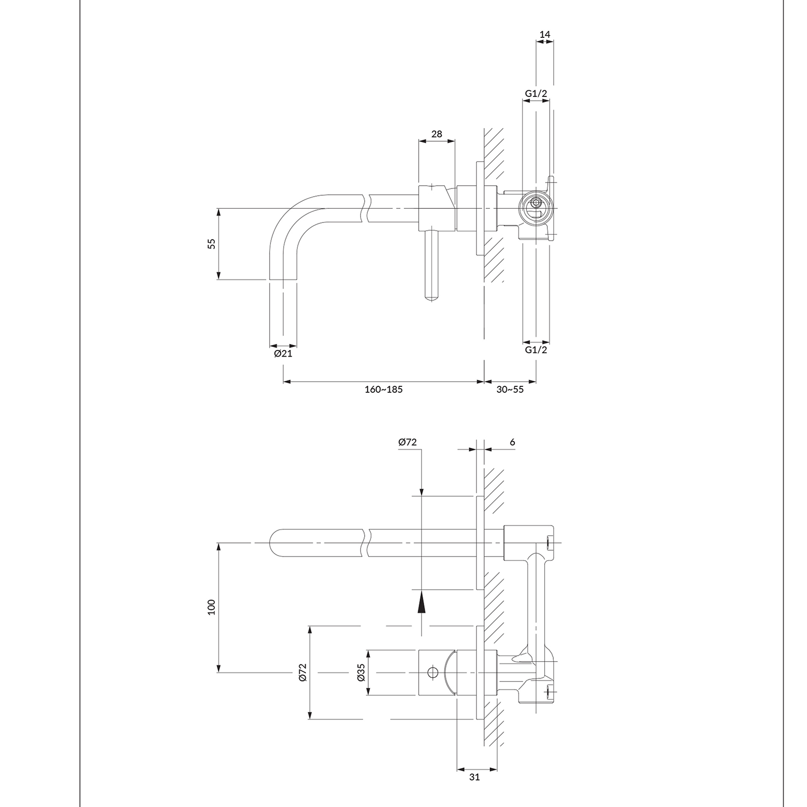 - Sprue-Reichweite von der Fliesenoberfläche: 18,5 cm