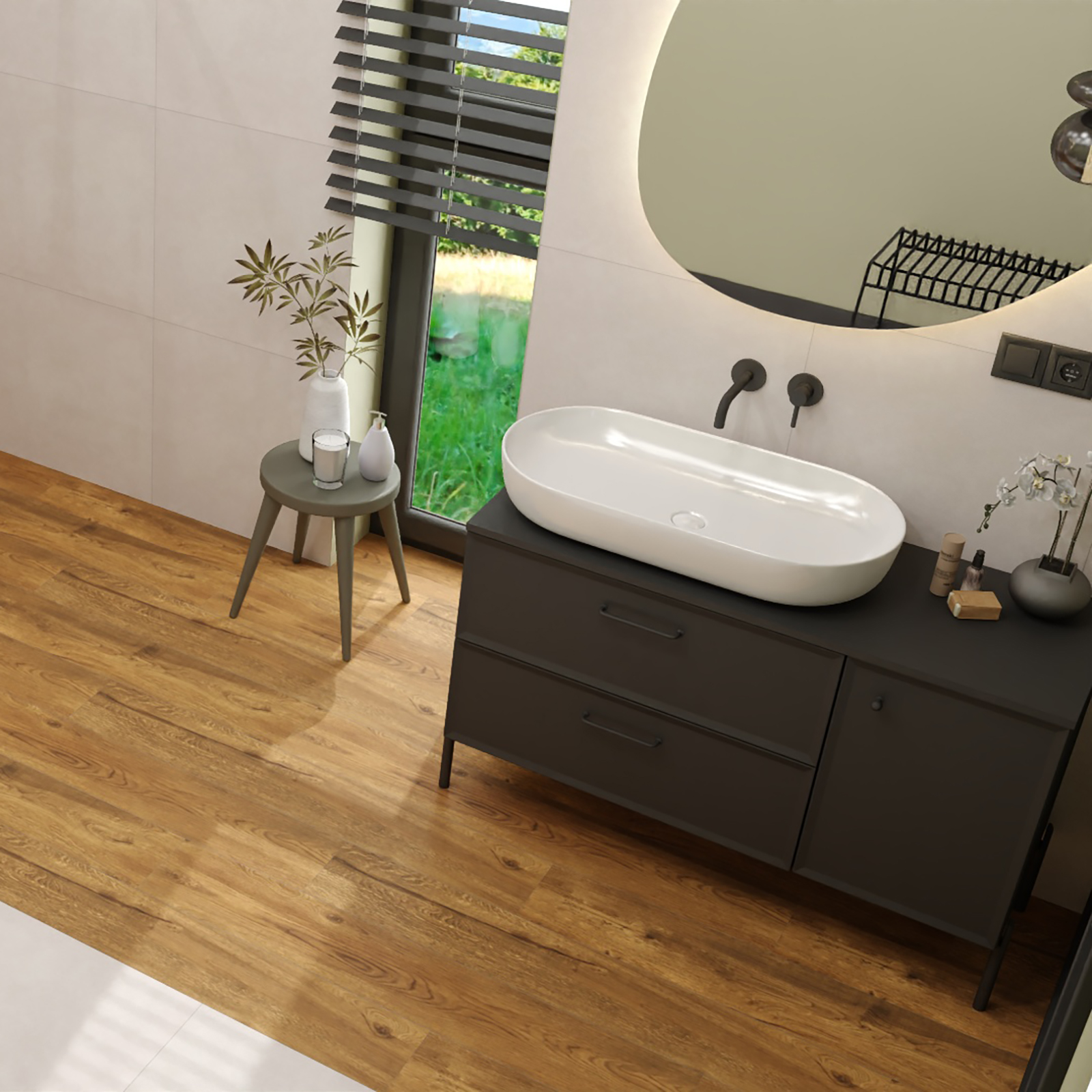 Wasserhahn im Waschbecken Y bündig montiert schwarz halbmatt.