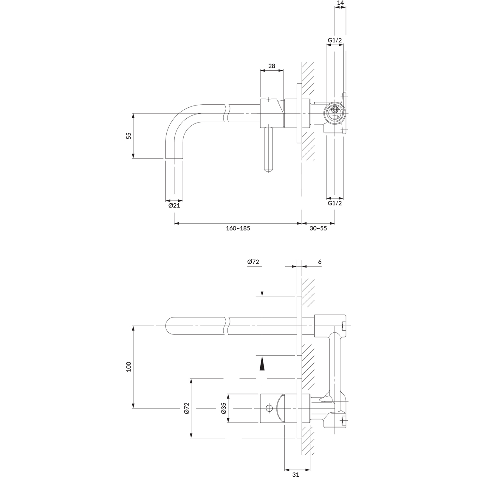 | Reichweite des Auslaufs: | 185 mm |