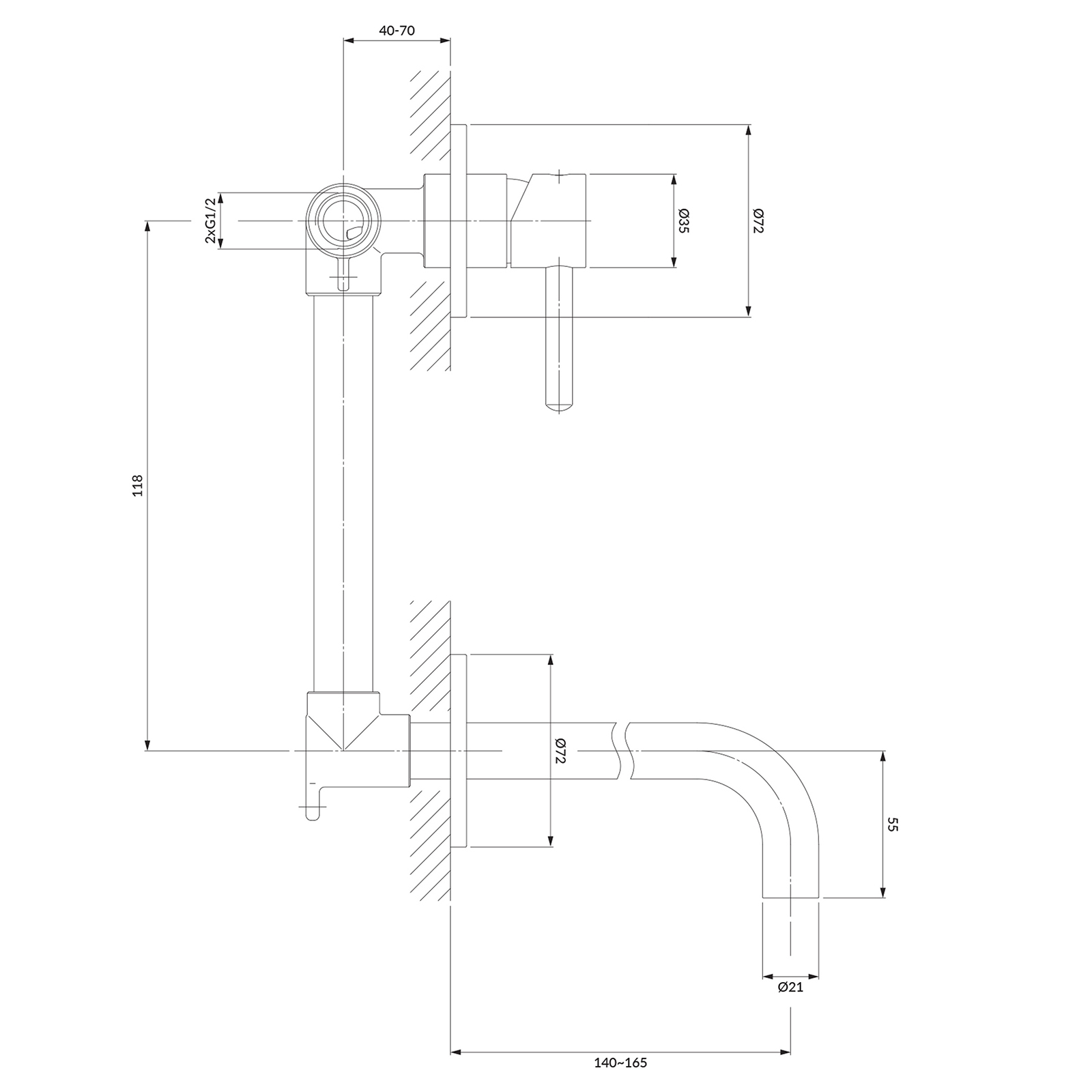 | Reichweite des Auslaufs: | 165 mm |