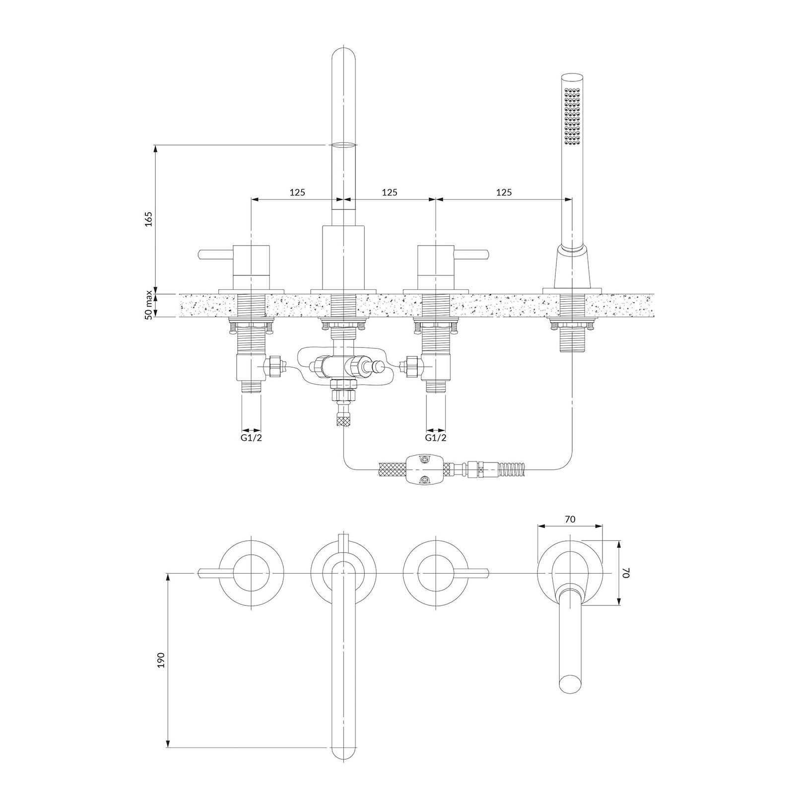 - Messing-Duschgriff, 1-Funktion