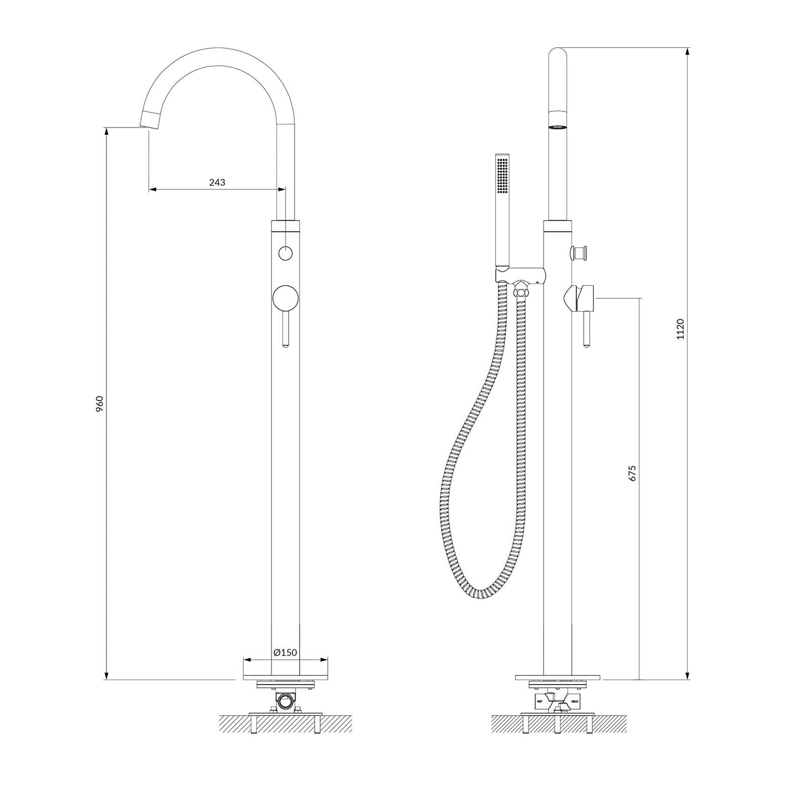 - Gesamthöhe des Wasserhahns: 112 cm,