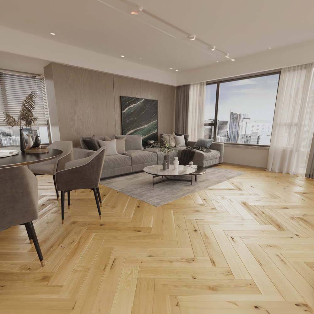 Parkett BARLINEK EICHE 1-STAB FISCHGRÄT LACK MAT MIKROFASE GEBÜRSTET 14x130x725mm COUNTRY