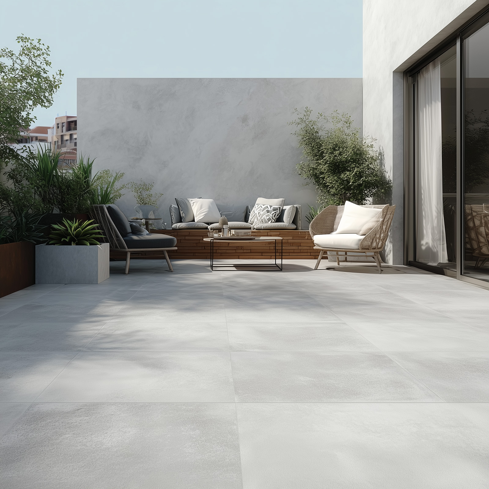 - Dank seiner geringen Wasseraufnahme ist Feinsteinzeug wasser- und feuchtigkeitsbeständig, widersteht auch extrem niedrigen Temperaturen und wird nicht rissig. Es kann bei praktisch allen Wetterbedingungen eingesetzt werden.