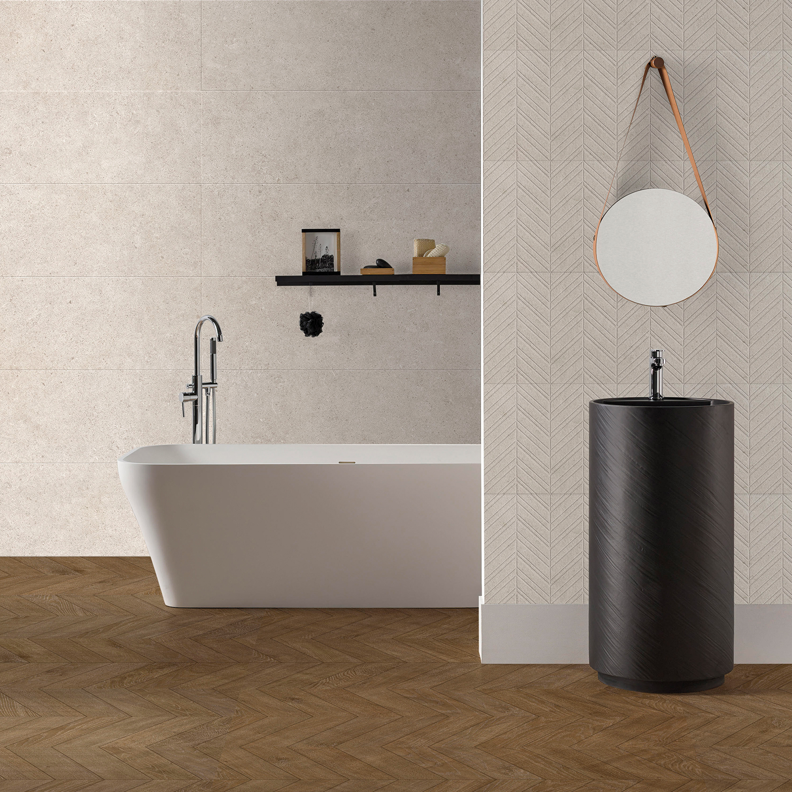 Für den Innenbereich. Wandfliesen können nur an der Wand verlegt werden, da ihre Glasur nicht begehbar ist und ihre Tragfähigkeit für eine Verlegung auf dem Fußboden nicht ausreicht.