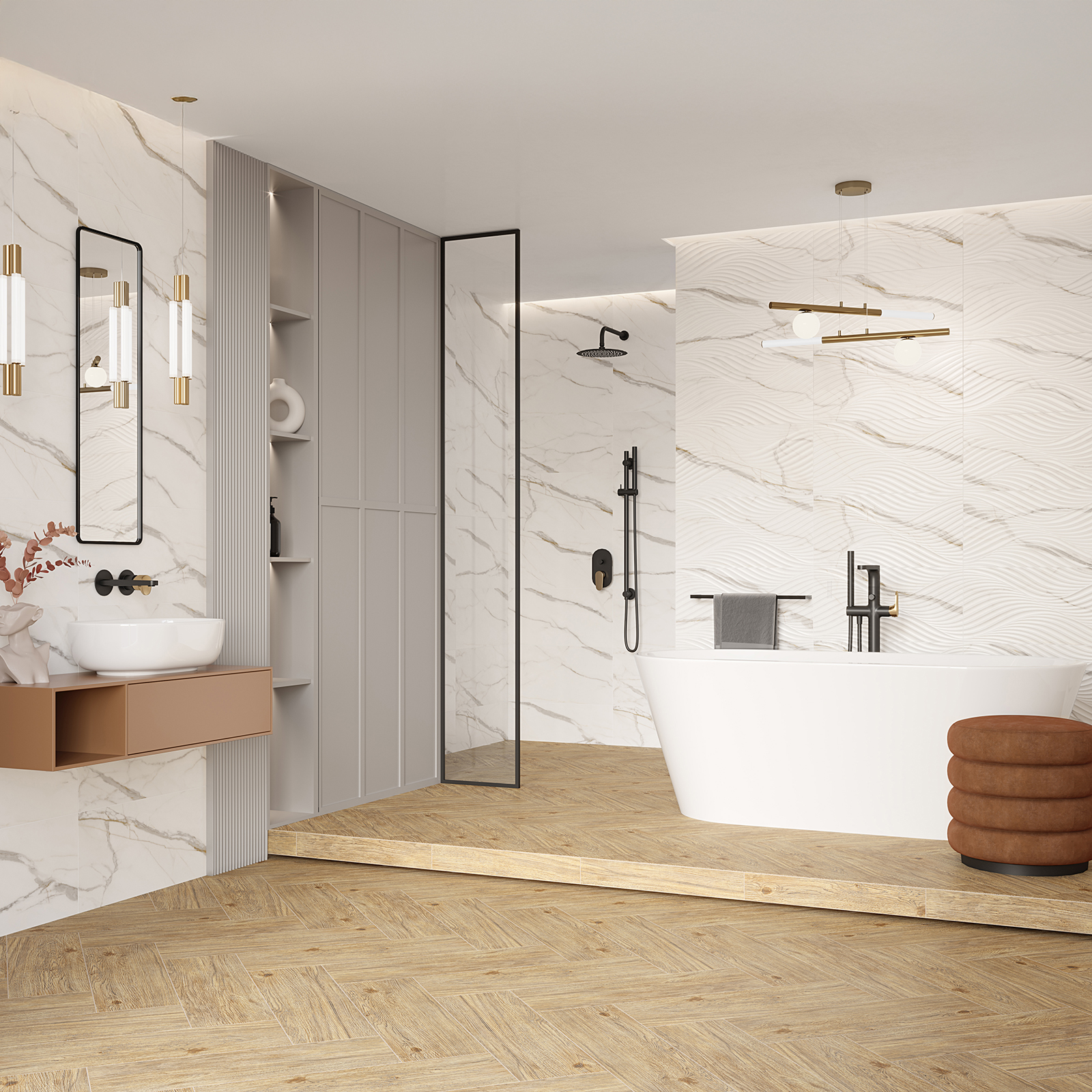Die Oberfläche der Wandfliesen ist mit einer dünnen Glasurschicht überzogen, die sie vor Beflecken schützt, leicht sauber zu halten ist und ein Höchstmaß an Hygiene während des Gebrauchs gewährleistet. Sie garantiert außerdem, dass die ursprüngliche Farbe während der gesamten Lebensdauer erhalten bleibt.