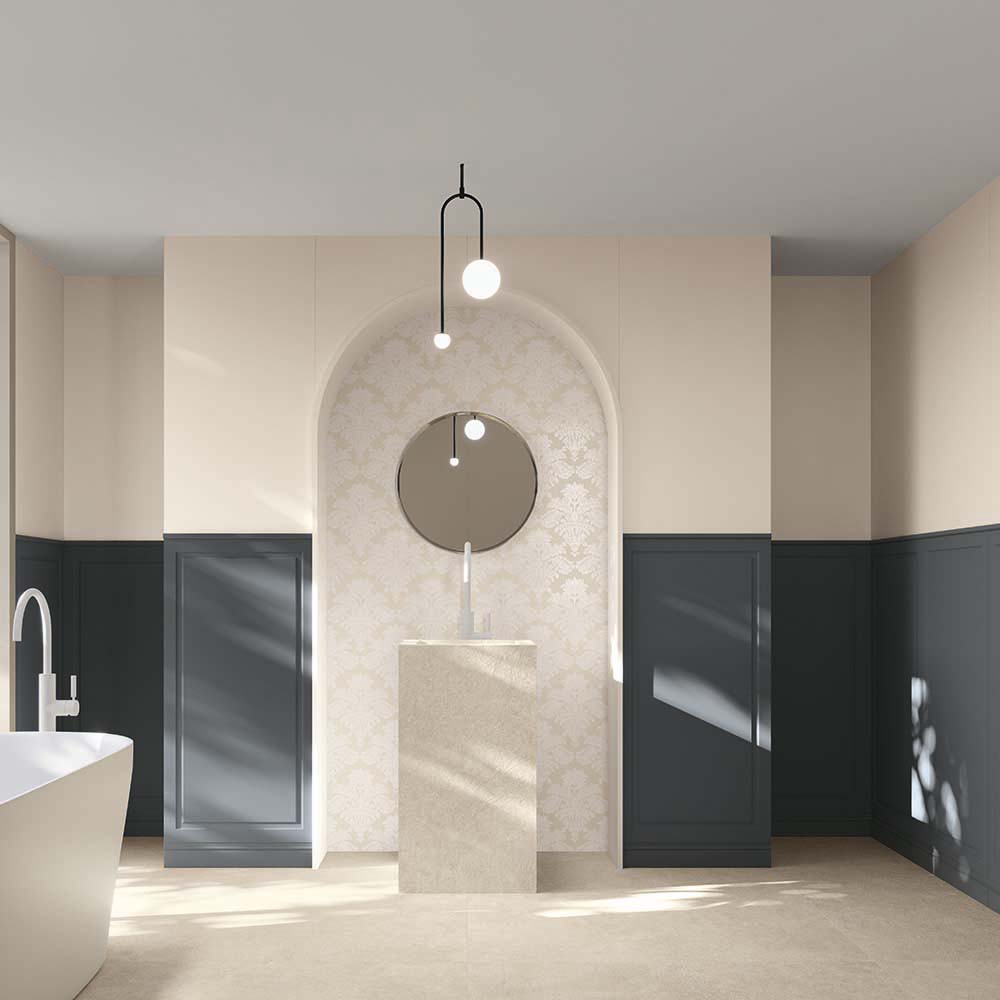 Für den Innenbereich. Wandfliesen können nur an der Wand verlegt werden, da ihre Glasur nicht begehbar ist und ihre Tragfähigkeit für eine Verlegung auf dem Fußboden nicht ausreicht.