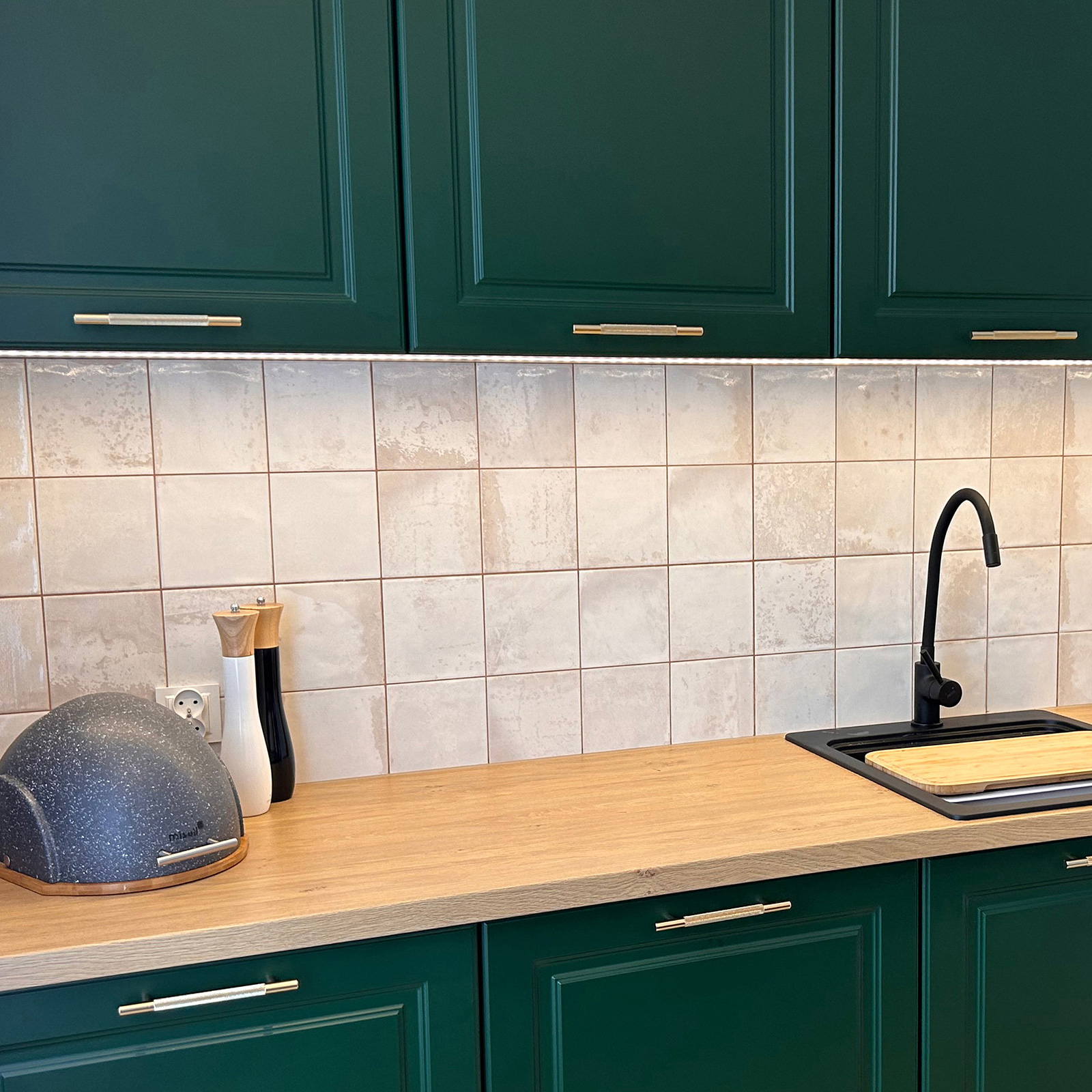 Die Oberfläche der Wandfliesen ist mit einer dünnen Glasurschicht überzogen, die sie vor Beflecken schützt, leicht sauber zu halten ist und ein Höchstmaß an Hygiene während des Gebrauchs gewährleistet. Sie garantiert außerdem, dass die ursprüngliche Farbe während der gesamten Lebensdauer erhalten bleibt.