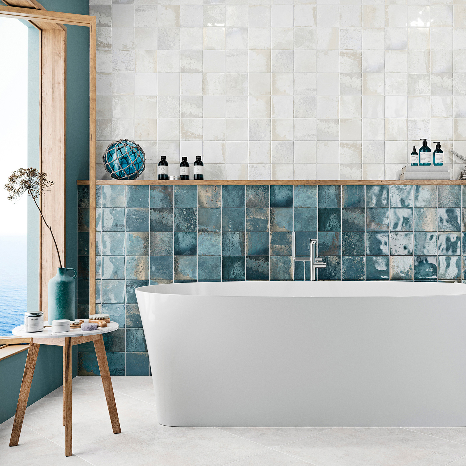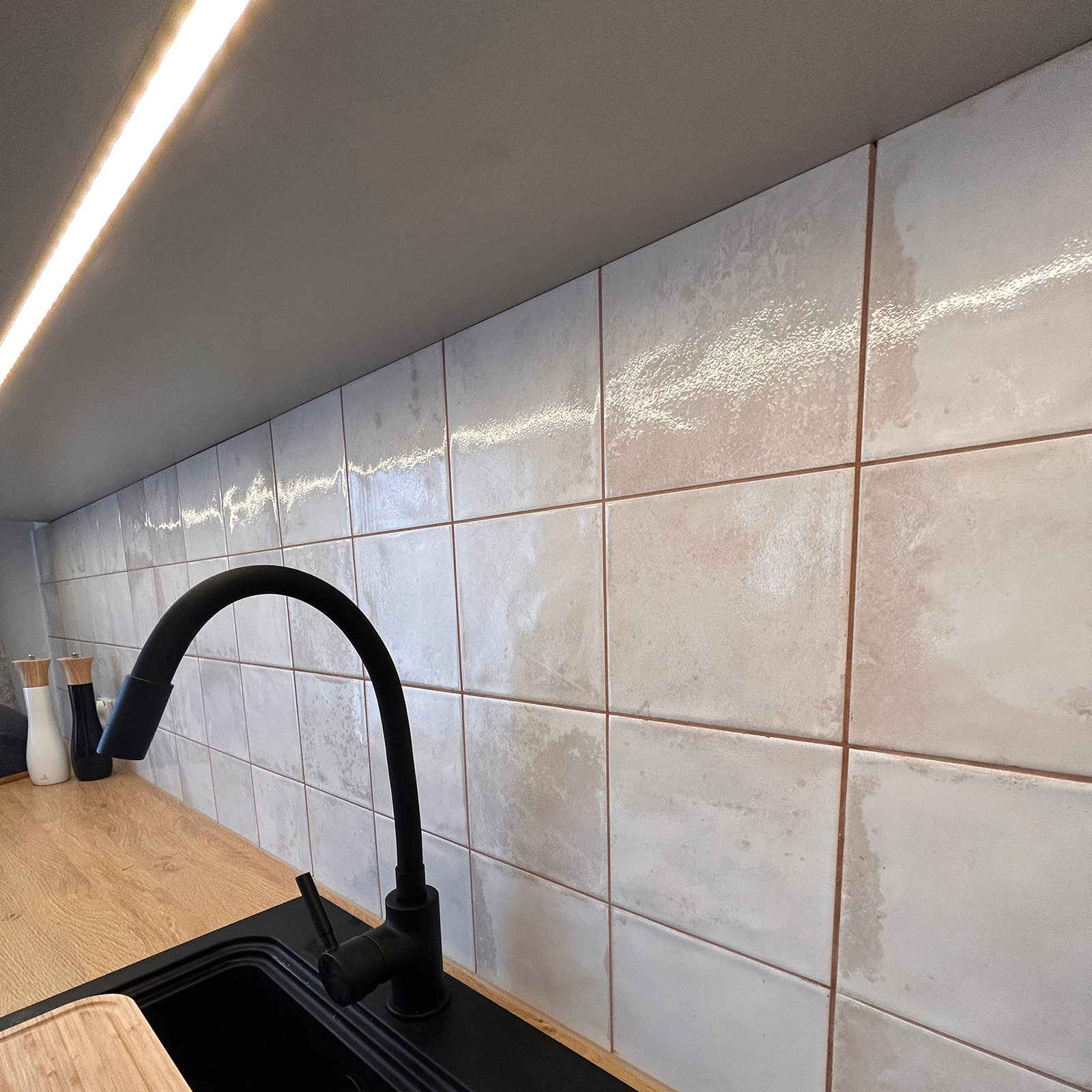 Für den Innenbereich. Wandfliesen können nur an der Wand verlegt werden, da ihre Glasur nicht begehbar ist und ihre Tragfähigkeit für eine Verlegung auf dem Fußboden nicht ausreicht.