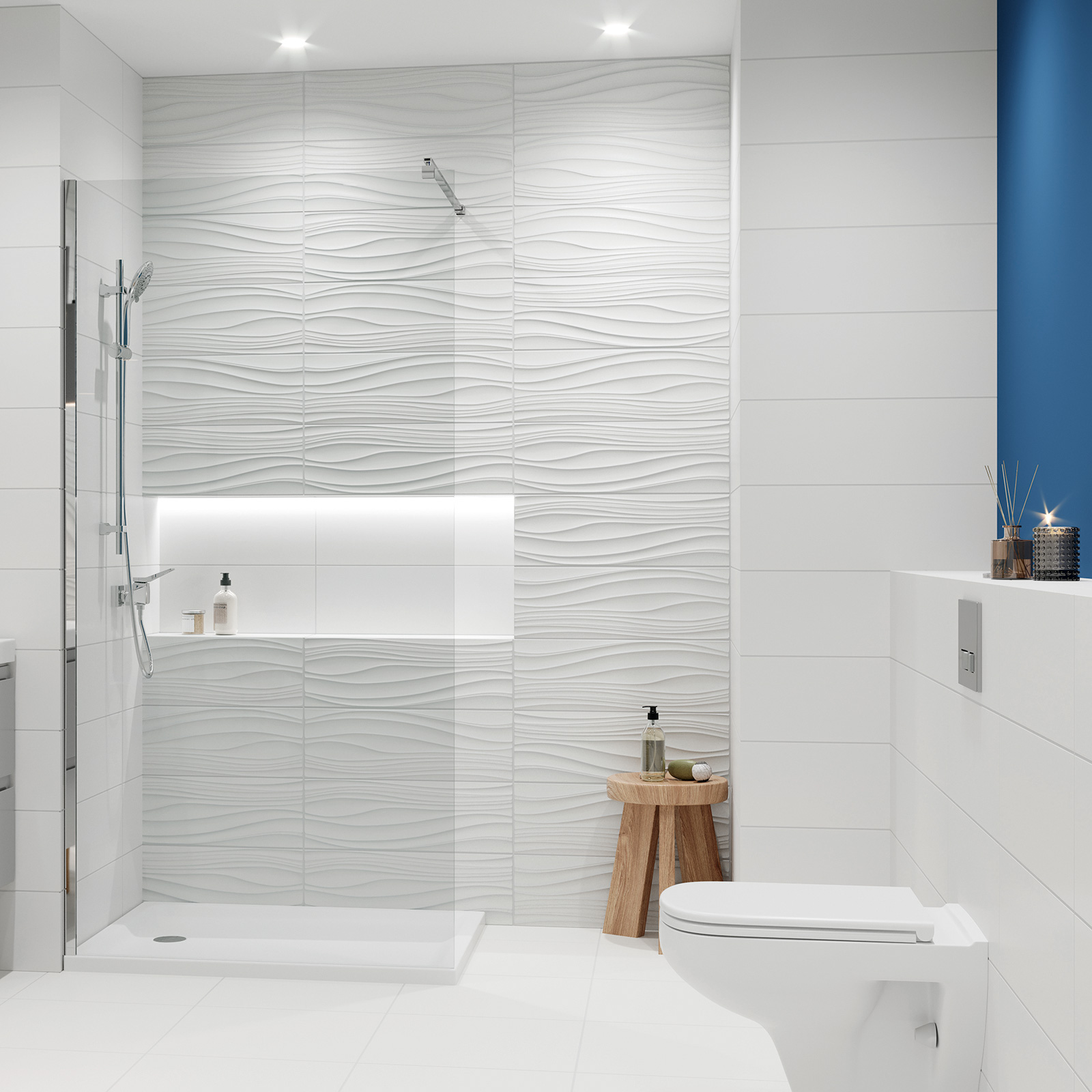 Für den Innenbereich. Wandfliesen können nur an der Wand verlegt werden, da ihre Glasur nicht begehbar ist und ihre Tragfähigkeit für eine Verlegung auf dem Fußboden nicht ausreicht.