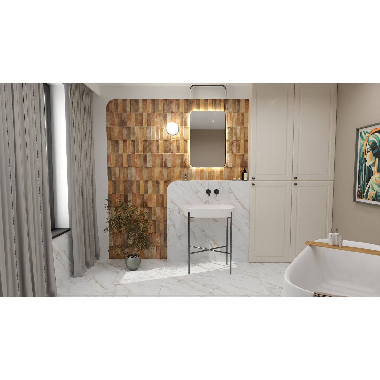 Für den Innenbereich. Wandfliesen können nur an der Wand verlegt werden, da ihre Glasur nicht begehbar ist und ihre Tragfähigkeit für eine Verlegung auf dem Fußboden nicht ausreicht.